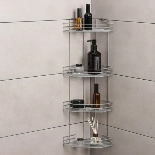 Вместительная угловая полочка для ванной из четырёх секций сэкономит пространство в ванной комнате.