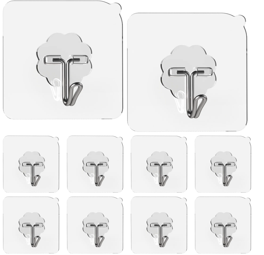Комплект включает в себя целых 10 самоклеящихся крючков, на которые можно повесить полотенце, мочалку, ключи, шарф или любой другой предмет.