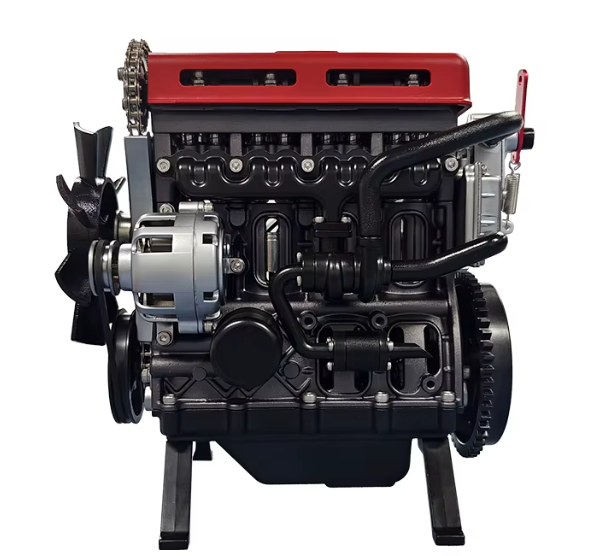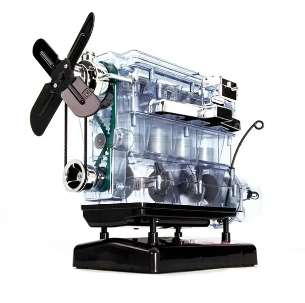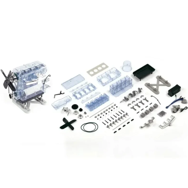 Комплект для сборки детализированной копии рядного четырехцилиндрового двигателя. Прозрачный корпус позволяет наблюдать за работой поршней и других внутренних механизмов.