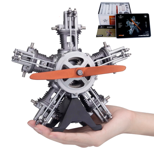Модель, изготовленная полностью из металла, имеет компактные размеры — всего 11,2 x 9 x 9,2 см. Она запускается с помощью электрического стартера, а воздушное охлаждение позволяет двигателю работать на высоких оборотах. Это не просто статичный экспонат, а инженерное произведение, которое после сборки демонстрирует принципы работы настоящего двигателя внутреннего сгорания. Набор поставляется в виде комплекта для самостоятельной сборки, что позволяет вам лично прикоснуться к миру высокопроизводительной механики.