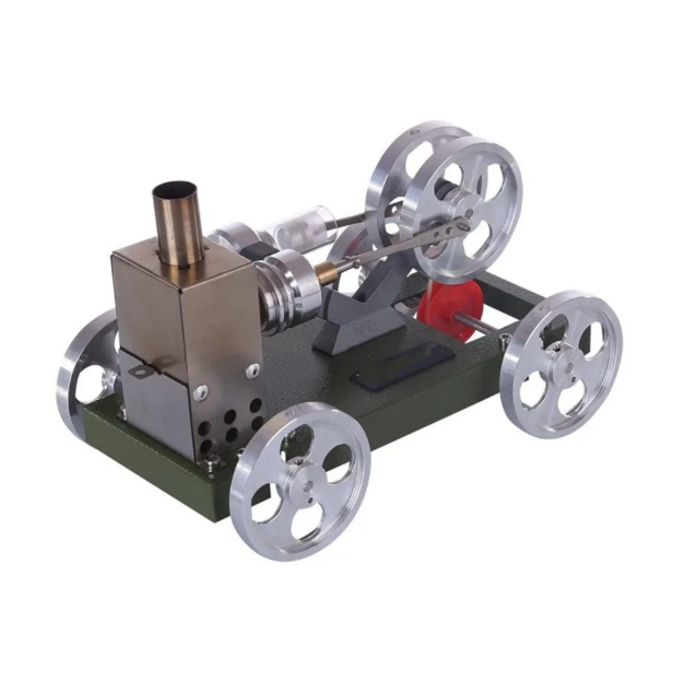 Эта металлическая модель автомобиля — не просто игрушка, а наглядный пример работы двигателя Стирлинга. Её конструкция проста и понятна: практически полностью металлическая, с точно подогнанными компонентами. Когда в горячий цилиндр из высокотемпературного стекла подаётся тепло от 95% спирта (не входит в комплект), начинается цикл, который приводит в движение поршень. Высокоскоростное вращение поршня передается на 55-миллиметровый маховик из сплава, и машинка начинает движение. Это захватывающее зрелище, демонстрирующее элегантность и красоту физических принципов.