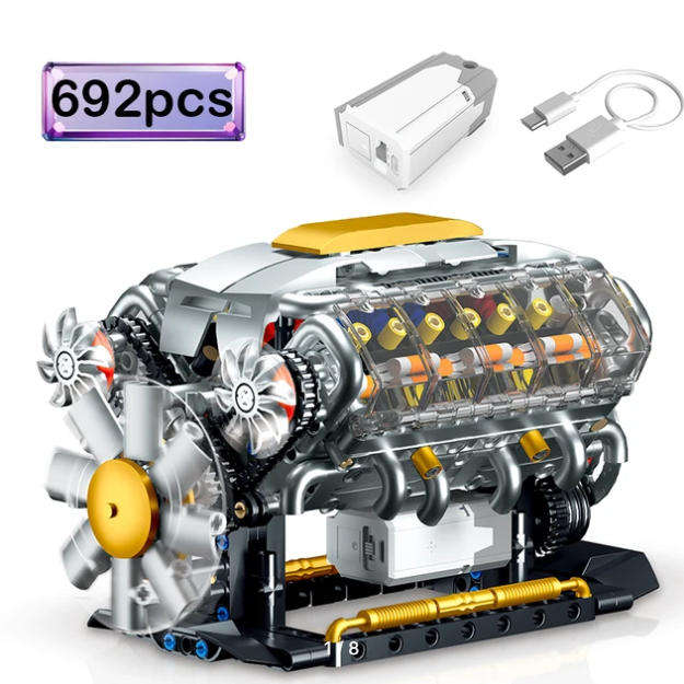 Совместимый с деталями Лего набор, позволяет вам собрать модель двигателя V8 из 692 элементов. Ключевая особенность — прозрачная головка цилиндров, которая дает возможность наблюдать за движением поршней и других внутренних компонентов во время работы.