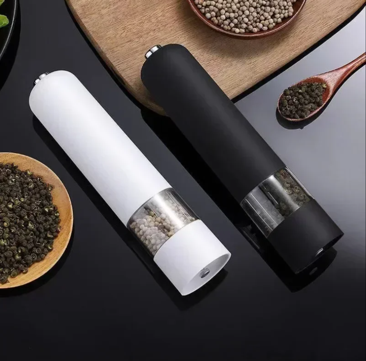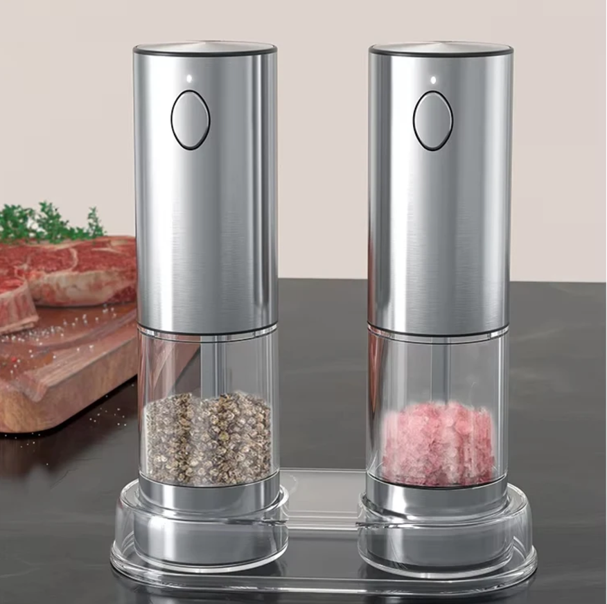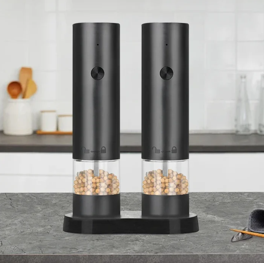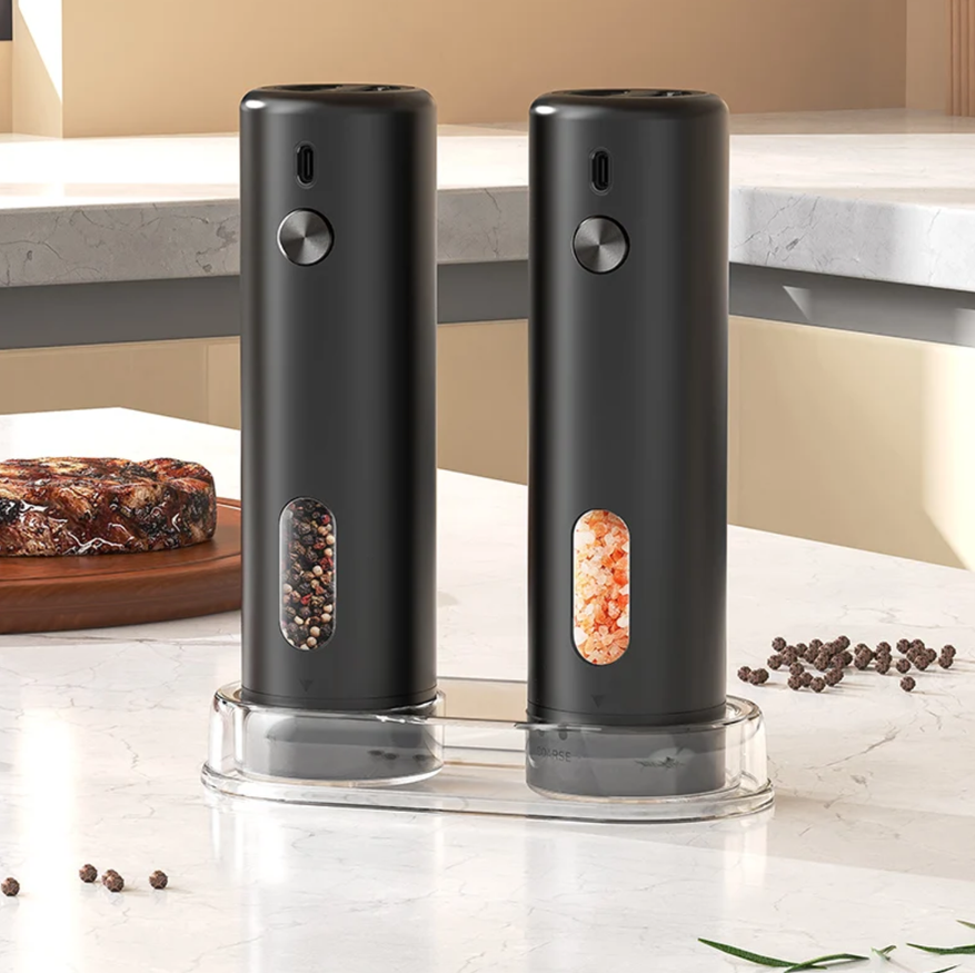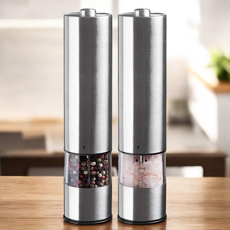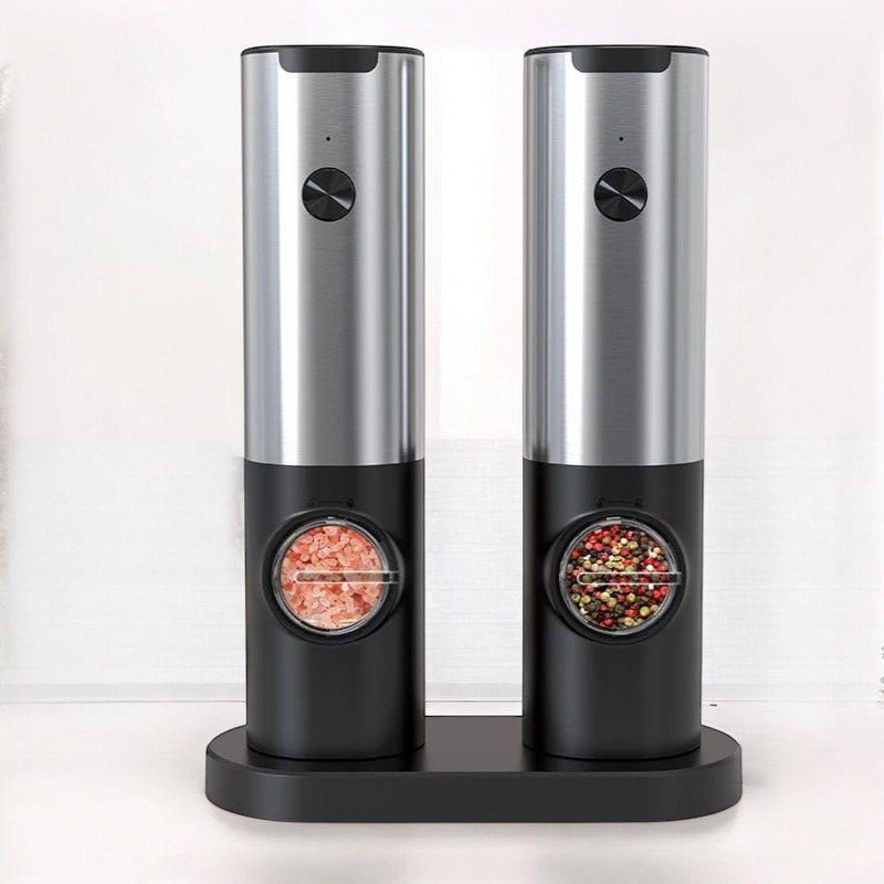 Автоматическая мельница CLITON — это USB-заряжаемая модель для соли и перца с корпусом из нержавеющей стали и регулируемой степенью помола. Внутри стоит керамический шлифовальный узел, который устойчив к износу и дает равномерный помол даже на жестких специях. Корпус гладкий, металлический, с оливковидной кнопкой запуска. При работе включается светодиодная подсветка, так что помол хорошо виден даже при слабом освещении. Контейнер объемом 95 мл прозрачный, удобно контролировать остаток. Степень помола регулируется вручную: можно сделать смесь крупнее для салатов или тонкой для горячих блюд. Заряжается мельница от литиевой батареи через порт Type-C, не требует батареек и рассчитана на длительное использование. Доступны разные комплекты: по одной мельнице для соли или перца, либо набор для обеих приправ сразу.