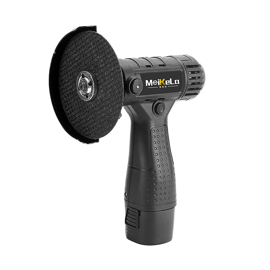 Очередной представитель миниатюрных угловых шлифмашин. Но в отличие от предыдущих моделей, у которых рабочий диаметр отрезного диска был 76 мм, данная модель поддерживает 100 мм круги. При своих небольших габаритах, устройство позволяет делать пропилы глубиной до 30 мм. В качестве элемента питания в Meikela установлен аккумулятор на 16.8 В, с емкостью 1500 мАч. В стандартный комплект поставки входит УШМ, один съемный аккумулятор, а также зарядное устройство.