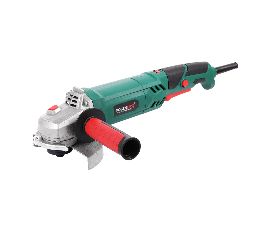 Теперь уже проводная УШМ от китайского бренда POSENPRO. Инструмент обладает номинальной мощностью 1100 Вт, что достаточно, для большинства видов работ. POSENPRO оснащен шестиступенчатой регулировкой скорости вращения двигателя в диапазоне 3000-12000 об/мин. Рабочий диаметр отрезных дисков – 125 мм. Дополнительная рукоять имеет прорезиненные вставки и может крепится с двух сторон «болгарки». Это очень удобно в том случае, если вы левша. На мой взгляд, на данную модель стоит обратить внимание, если планируются длительные работы в течение дня.