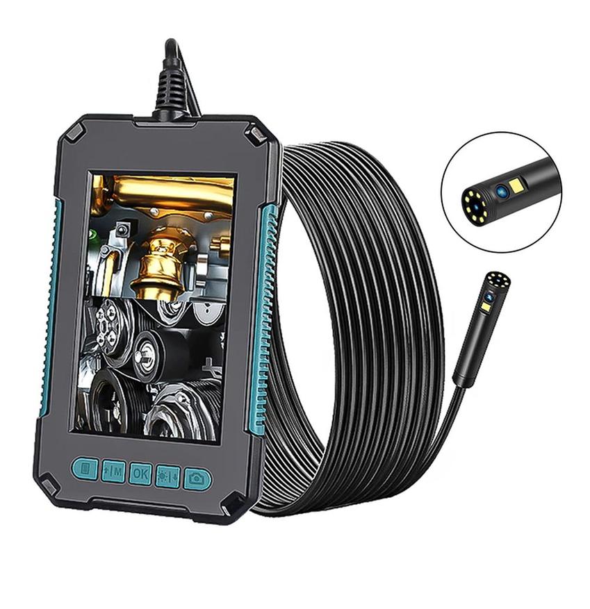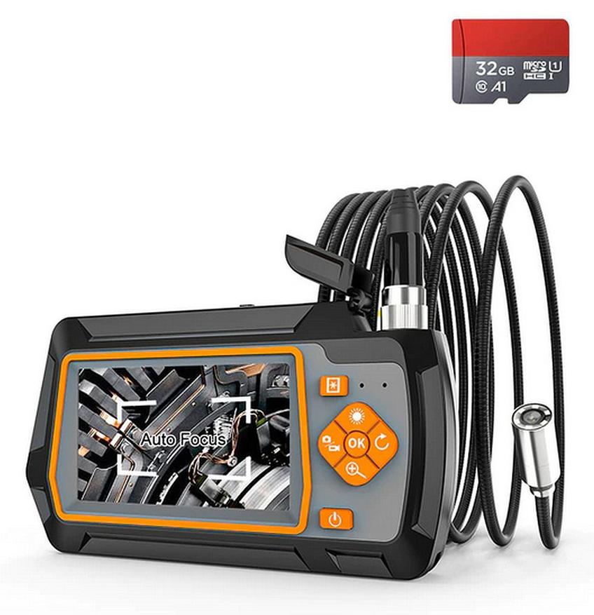 Продвинутая модель эндоскопа с большим цветным дисплеем диагональю 4.3" (11см) и двумя камерами с разрешением 1080P (1960*1080). Имею такой аппарат в наличии, весьма качественная машинка с хорошей картинкой. Батарея 2600мАч обеспечивает работу до 4 часов. Диаметр камеры 8мм. 8 светодиодов подсветки основной камеры +1 для боковой. На дисплее можно одновременно отображать картинку с обеих камер и вести запись видео и фото на карточку microSD. Длина кабеля: 2, 5 или 10м