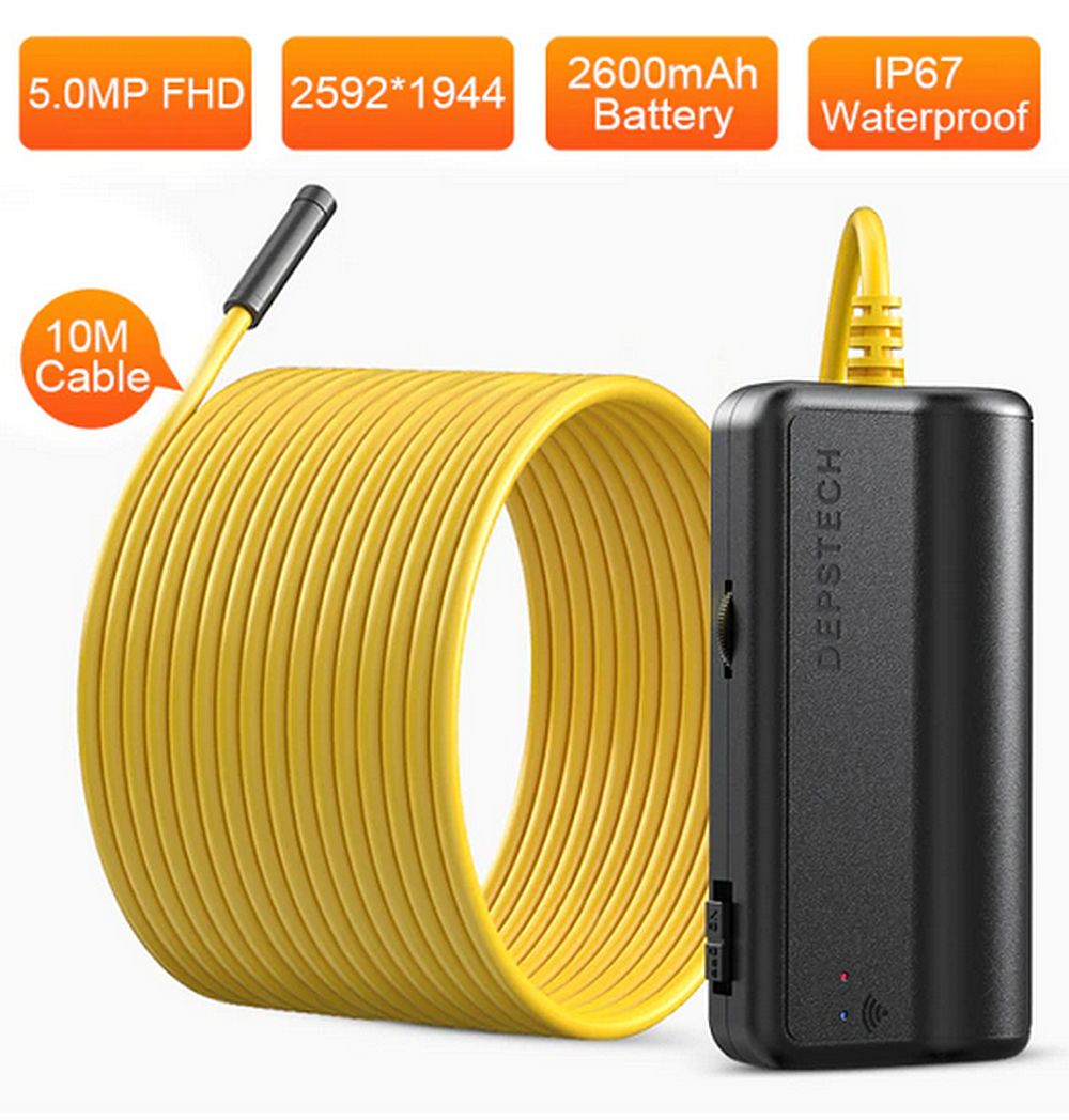 Продвинутая моделька Wi-Fi эндоскопа с камерой 5Мп с разрешением картинки до 2592x1944. Заявлено, что специальный сенсор Blueart 2.0 обеспечивает более качественное изображение при низком освещении. Фокусное расстояние от 7 до 40см. Емкий аккумулятор на 2200мАч позволяет получить длительный период автономной работы без подзарядки. Эндоскоп работает с устройствами на базе Андроид/IOS/Windows. Варианты длины кабеля до 10м.