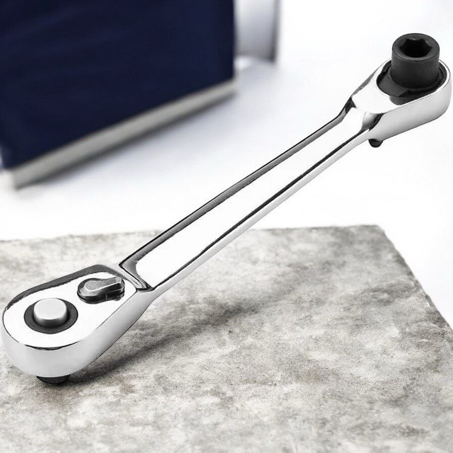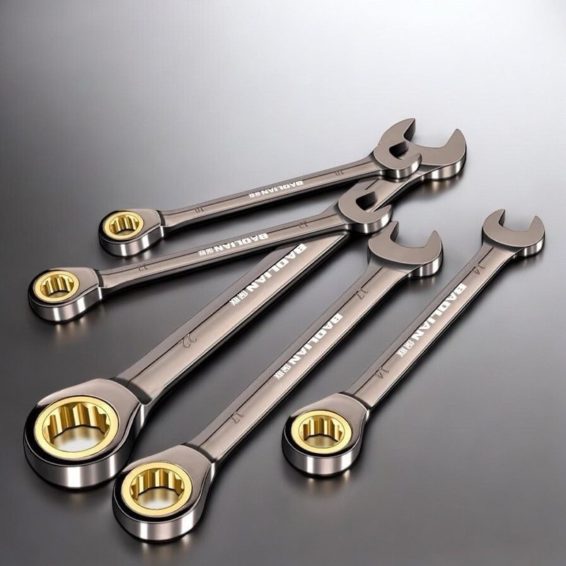 С рабочим диапазоном 8-22 мм выполнен из хромованадиевой стали и оснащен храповым механизмом на 72 зуба, что позволяет работать с шагом около 5 градусов в ограниченном пространстве. Конструкция двусторонняя, удлиненная и утолщенная, рассчитана на быстрые операции с крепежом разного размера без постоянной смены инструмента. Поверхность прошла многоступенчатую полировку и хромирование, что повышает стойкость к износу и коррозии. Ключ ориентирован на обслуживание велосипедов, мотоциклов, автомобилей и бытовой техники, подходит для металлического крепежа.