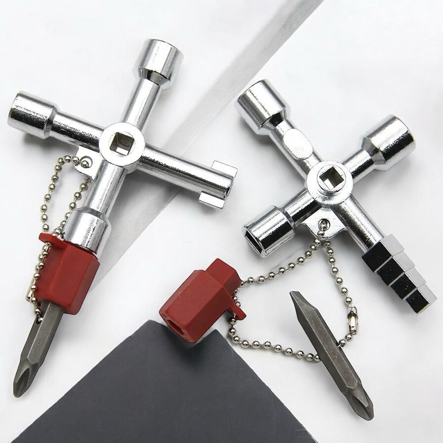 Многофункциональный набор ключей Mr Drill 4-в-1 выполнен в компактном крестообразном формате и предназначен для работы с металлическим крепежом. В комплект входят два варианта ключа: стандартный и ступенчатый в стиле «пагода», что позволяет перекрывать несколько типоразмеров без смены инструмента. Конструкция рассчитана на ручную работу, размеры корпуса около 70-86 мм, вес порядка 70 г, что делает ключ удобным для ношения в ящике с инструментами или в дорожном наборе. Формат 4-в-1 ориентирован на быстрые монтажные и сервисные операции, где важна универсальность и минимальный набор оснастки, без трещотки и сложных механизмов.
