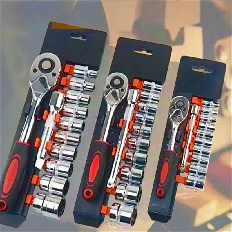 Набор торцевых ключей Edieu на 12 предметов собран на базе храпового ключа и ориентирован на универсальные ремонтные задачи. Все элементы выполнены из хромованадиевой стали с хромированным покрытием, инструмент устойчив к износу и коррозии. В комплект входят трещоточный ключ с кнопочным фиксатором, удлинительный стержень и десять торцевых головок, что позволяет быстро менять оснастку без лишних движений. Набор перекрывает сразу три популярных посадочных размера — 1/4, 3/8 и 1/2 дюйма, с диапазоном головок от 4 до 24 мм в зависимости от формата, поэтому подходит как для мелких работ, так и для более крупного крепежа. Формат рассчитан на гараж, мастерскую, обслуживание автомобиля и бытовой ремонт, где нужен один компактный, но универсальный комплект.