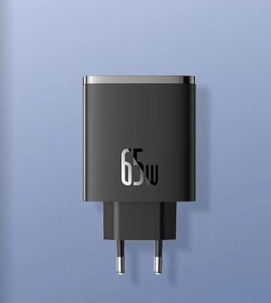 GaN зарядное устройство от Baseus максимальной мощностью 65Вт. Имеет два порта usb type-c и один порт type-A. Пользователи подтверждают поддержку быстрых протоколов зарядки PD, QC и т. д, при этом корпус зарядника нагревается несильно. Один из самых популярных вариантов для покупки на Али.