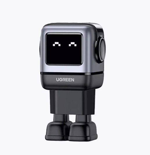 65-ватный GaN блок питания от компании Ugreen в форме робота с индикацией. Интересно обыгран дизайн, даже зарядное оказывается можно сделать забавным. Имеет два порта type-c и один порт type-a. Имеет три «выражения лица»: нет подключенных устройств, идет зарядка и полностью заряжен. Корпус имеет компактные габариты и удобно располагается на ровной поверхности с помощью ножек, когда зарядка не нужна.