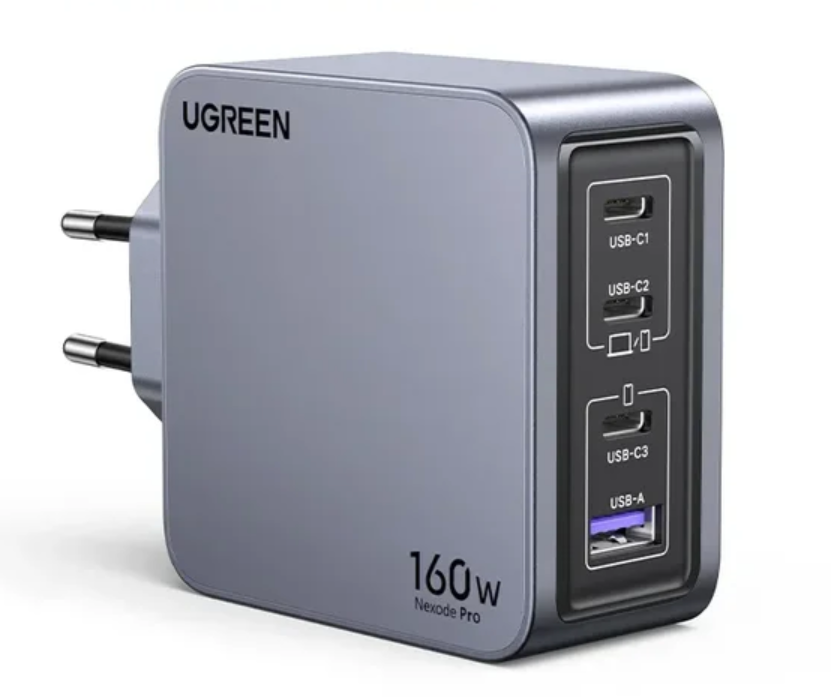 Зарядное устройство UGREEN Nexode Pro 160W оснащено несколькими портами — три USB-C и один USB-A, что дает возможность одновременно заряжать разнообразные устройства, включая ноутбуки, планшеты и смартфоны. Один из портов поддерживает максимальную мощность до 140 Вт, что подходит для питания устройств с высоким энергопотреблением. Компактный форм-фактор и использование технологии GaN обеспечивают эффективное рассеивание тепла и экономию пространства, что делает устройство удобным для использования как в домашних условиях, так и в поездках.