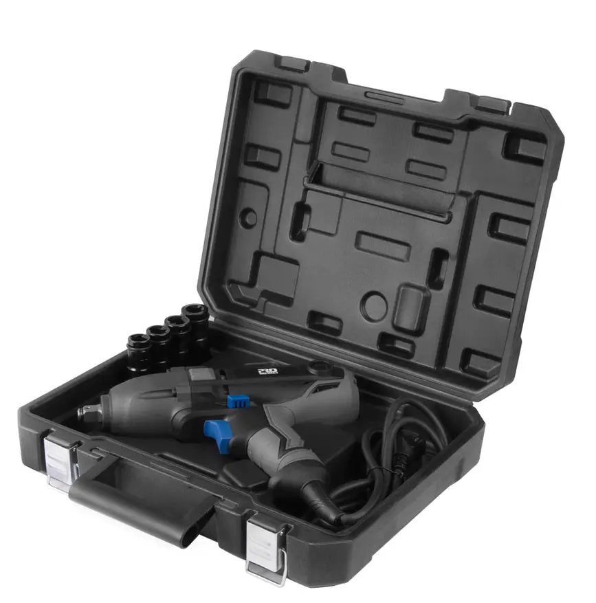 Сетевой гайковерт Prostormer предназначен для аналогичных задач, что и аккумуляторные модели, только питается от сети 220В. Будет интересен больше организациям и предприятиям, где мобильность не требуется. Поскольку аккумуляторные батареи составляют около половины стоимости, то в эксплуатации сетевые модели гораздо дешевле. Хвостовик квадрат 1/2 дюйма, номинальная мощность 1100Вт, крутящий момент около 450НМ. Для легкового и грузового шиномонтажа хватит