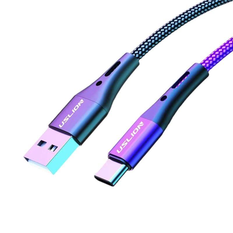 Бренд USLION не только предлагает с данной моделью быструю зарядку со скоростью передачи данных до 480 Мбит/с и поддержкой QC 3.0, но и яркий дизайн. Кабель выполнен в нейлоновой оплетке и доступен в разных вариантах длины — от 0,5 м до 3 м, что позволяет выбрать подходящий формат под индивидуальные потребности. Подключение через USB Type-C/USB Type-C.