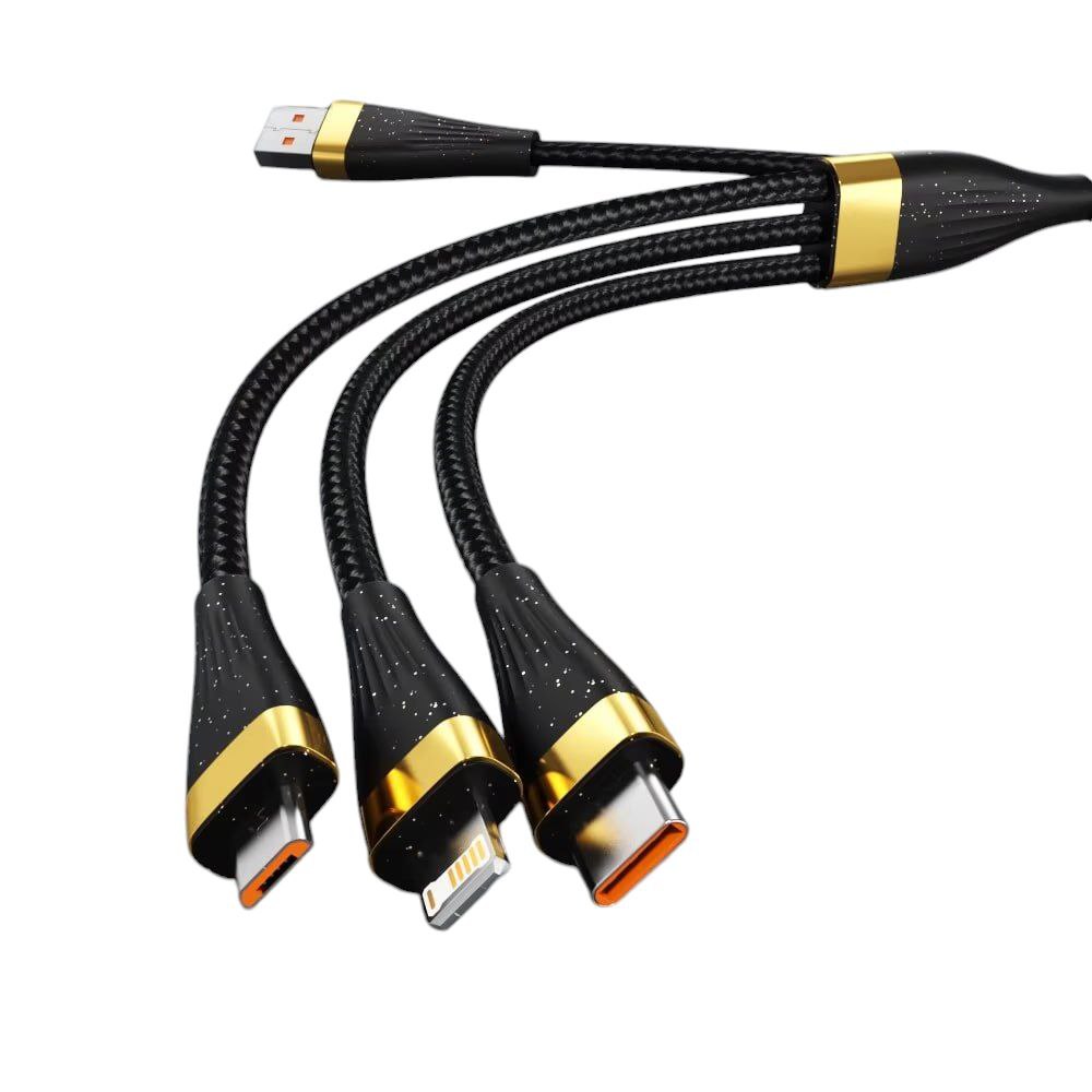 Кабель ASOMETECH 3 в 1 подойдет тем, кто пользуется несколькими устройствами с разными разъемами. Если у вас в семье или на работе одни гаджеты с USB Type-C, другие с Lightning, а третьи с Micro-USB он станет универсальным помощником. С максимальной мощностью 100 Вт и током 6А он способен быстро заряжать как смартфоны, так и планшеты или другие гаджеты. Его длина в 1,25 м подходит для использования дома, в машине или офисе, а три разных выхода позволяют не таскать с собой гору проводов, заменяя их одним многофункциональным решением.