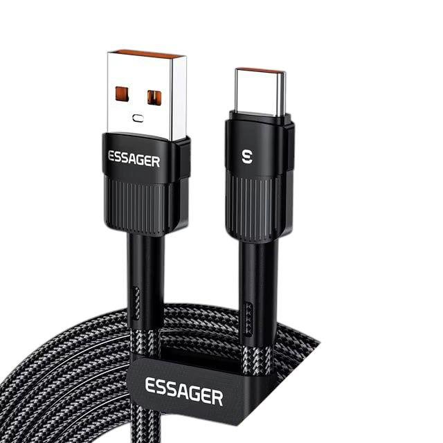 Бренд Essager также есть в моем списке. Желательно продумать заранее, как вы будете заряжать свой девайс, в машине, на рабочем столе, в специальном рюкзаке со встроенным повербанком, потому что данный кабель для быстрой зарядки с мощностью 100Вт/7А представлен в 3 длинах: 0,5 м, 1 м, 2 м, 3 м и только в одном исполнении USB Type-A, USB Type-C. А вот расцветку также можно выбрать: кабель черный, синий либо коричневый. Стоит отметить, что есть поддержка Quick Charge 3.0.