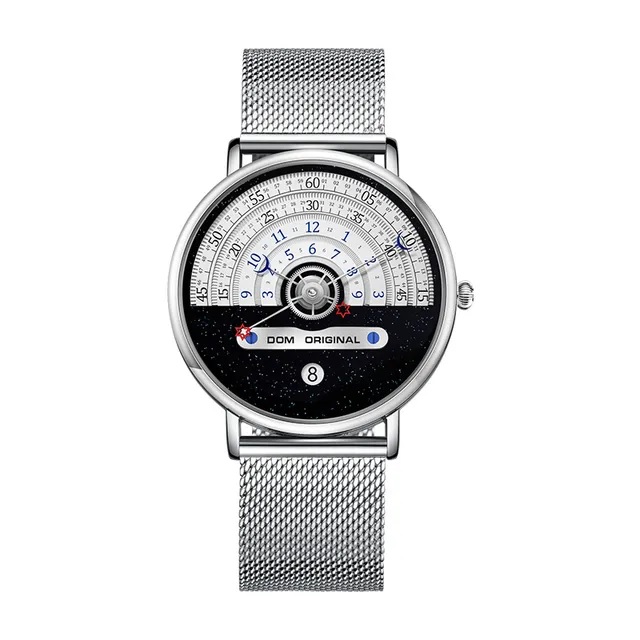 Следующие в подборке необычные часы с оригинальным дизайном. На циферблате расположены две основных временных шкалы: минутная (1-60 минут), а также часовая (1-12 часов). На первый взгляд может показаться, что такими часами будет довольно сложно пользоваться, однако это не так. Например, на фотографии, которая прикреплена в качестве превью этих часов, указано время 10:10. Корпус часов изготовлен из нержавеющей стали, а браслет — из цинкового сплава. Сверху минеральное стекло, а за точный показ времени отвечает японский кварцевый механизм. Кстати, водонепроницаемость у них посредственная, поэтому душ принимать в них не стоит.