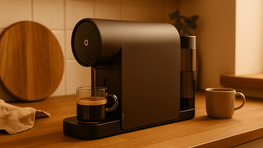 Устройство подойдёт для небольших кухонь и рабочих мест, где важно сэкономить пространство, но при этом иметь под рукой горячий кофе.