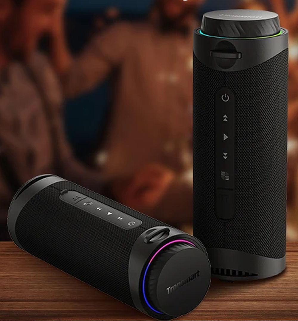 Еще один популярный и проверенный лично бренд Tronsmart. Обычно колонки этого производителя отличаются очень насыщенным звуком и хорошими басами. Tronsmart T7 не стал исключением. Заявленной производителем фишкой данной модели является создание объемной зоны звучания на 360 градусов благодаря цилиндрической конструкции устройства. Колонка поддерживает беспроводную передачу данных по Bluetooth 5.3 и имеет влагозащиту IPX7, что позволяет устройству ненадолго быть погруженным в воду без каких либо последствий. Время работы — до 12 часов. Есть возможность управления со смартфона с возможностью персонализации аудиосцен. Колонка оснащена LED подсветкой. Выходная мощность: 30 Вт. Частотный диапазон: 20 Гц-20 кГц. Две колонки одной линейки моделей могут работать в паре.