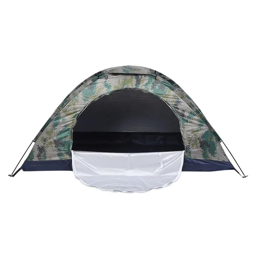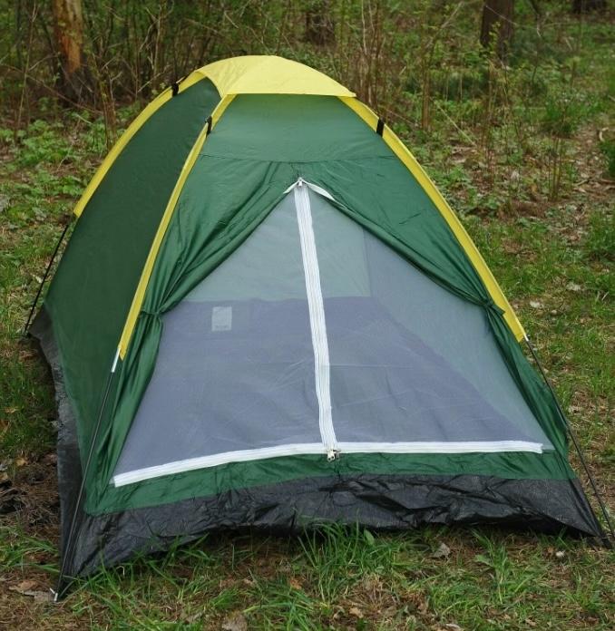 Однослойная палатка рассчитана на размещение двух человек. Она оборудована двумя окнами, которые обеспечивают отличную вентиляцию, а также имеют москитные сетки, как и двери.