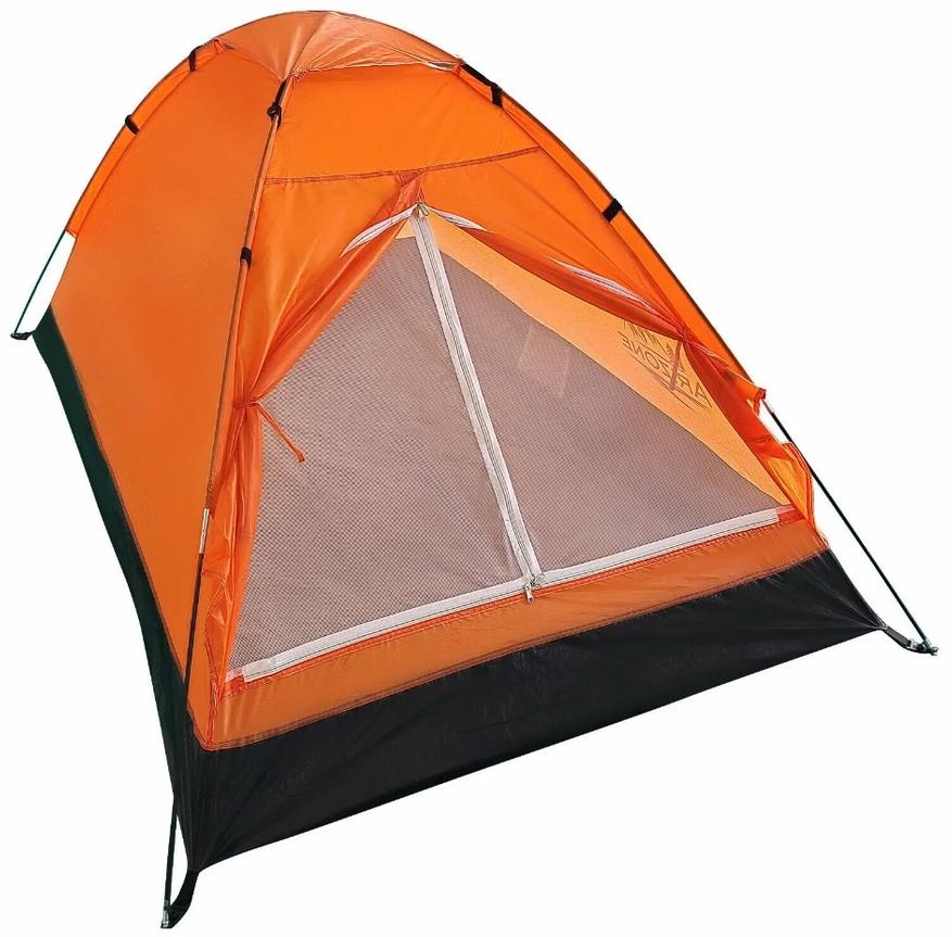 Двухместная палатка весом 1,3 кг есть в оранжевом цвете. В зеленом есть более просторная палатка, на трех человек.