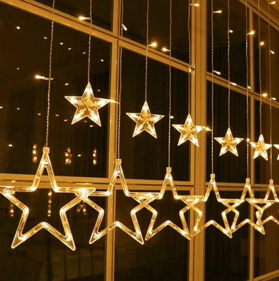 Красивая гирлянда-штора, которая идеально подойдет для украшения окна, стены или ёлки. Имеет двухуровневую конструкцию. На верхнем уровне размещены небольшие пластиковые звезды внутри которых установлены яркие светодиоды, а на втором уровне более крупные звезды. Смотрится гирлянда очень красиво. Её длина составляет 3 метра. Имеет 8 режимов мерцания и неплохое качество. К тому же, на странице продавца гирлянды представлены более чем в 18-ти дизайнах, поэтому каждый сможет подобрать для себя что-то особенное.