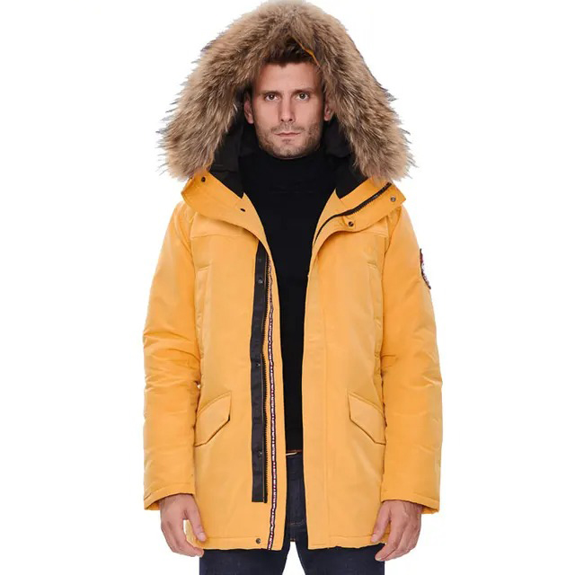 Снаружи куртка также выполнена из прочного нейлона (с защитой от воды и ветра), есть синтепоновая подкладка и капюшон со съемным мехом и флисом внутри.
