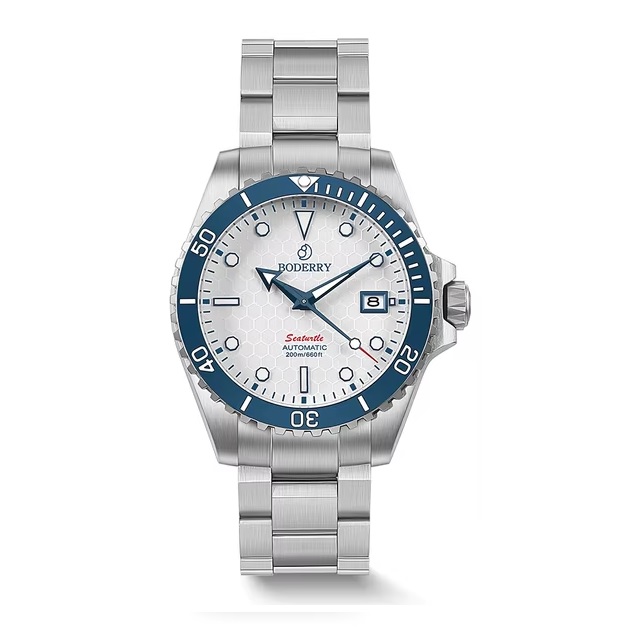 Ещё одни часы от Boderry, но уже из линейки Seaturtle. Модель позиционируется как дайверские часы, привлекающие внимание к проблеме загрязнения океана. Часы оснащены автоматическим механизмом Seiko NH35 с приличным запасом хода. Титановый корпус держится в универсальных рамках: 40 мм в диаметре и около 12-13 мм по толщине, без перегруза по габаритам.