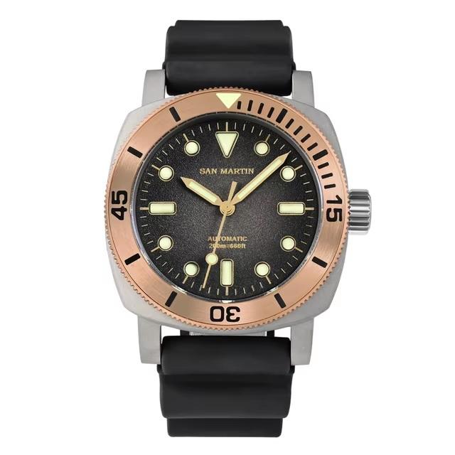 Это 42-мм часы из титана с пескоструйной обработкой с выразительным винтажным дизайном. Главным акцентом модели можно считать бронзовый односторонний безель, который со временем покрывается патиной и делает каждые такие часы уникальными. SN0125-T рассчитаны на погружения до 200 метров, оснащены завинчивающейся заводной головкой и задней крышкой, а также сапфировым стеклом.