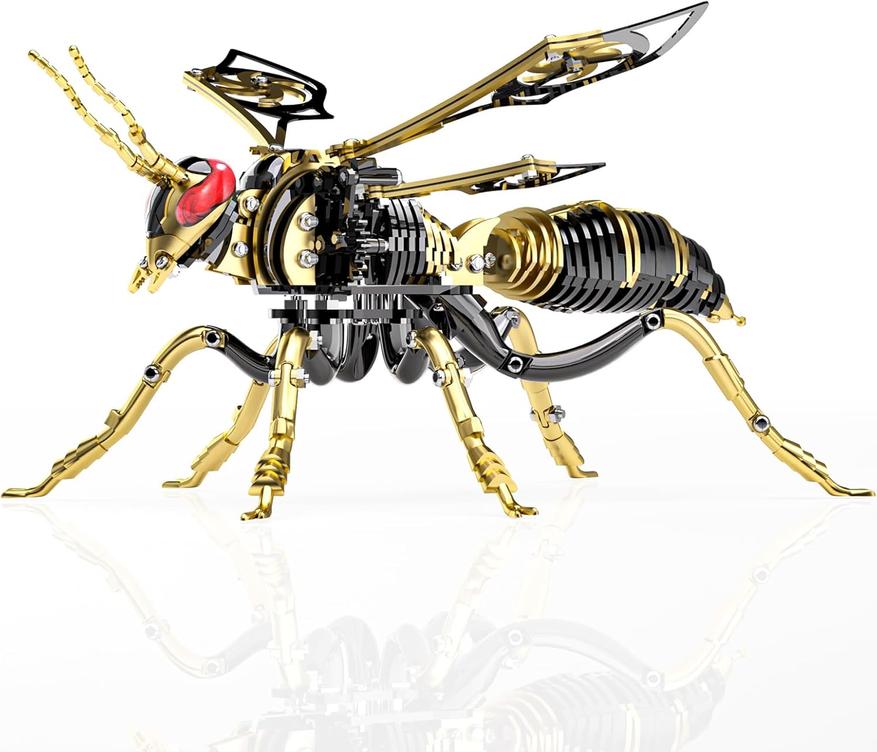 Детализированная механическая оса, собранная из множества металлических деталей. Модель отличается подвижными элементами, что делает её интересным конструктором для любителей механики.