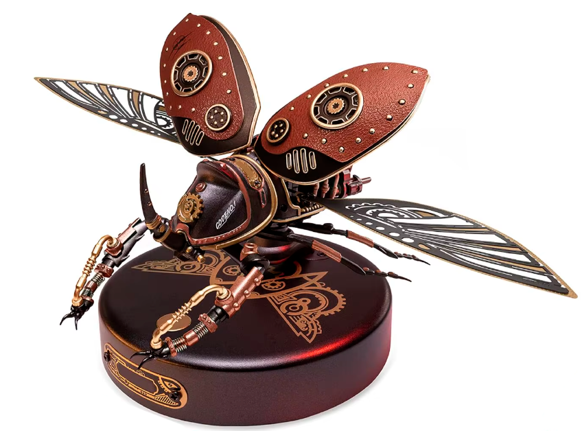 Эта подборка для тех, кто ценит точность, красоту и аккуратность в миниатюре. Каждый набор — конструктор для сборки механической модели насекомого в стиле стим-панк. Модели собираются из металлических деталей, шестерёнок и рычажков.