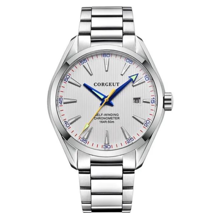 В часах установлено сапфировое стекло с AR-покрытием, что обеспечивает высокую прочность и защиту от царапин. Хорошую видимость в темноте и уникальный внешний вид циферблата придают стрелки с люминесцентной голубой подсветкой. На выбор есть несколько вариантов расцветок циферблата, включая цвет Tiffany — уникальный оттенок бирюзового. В наличии доступны модели с окошком «дата» и без.