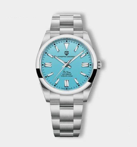 Надежные механические наручные часы, в основе которых точный механизм Seiko NH35A. Одним из преимуществ этой модели является прочный водонепроницаемый корпус из нержавеющей стали 316L. Заявленная водонепроницаемость 200 метров. Браслет типичный для Pagani со складной пряжкой, он просто хороший. Диаметр корпуса 39,7 мм, а толщина всего 11 мм.
