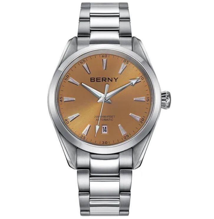 Наручные часы от BERNY оснащены японским механизмом SEIKO NH35, который является одним из самых признанных и популярных в мире. Этот механизм отличается высокой точностью и надежностью, совершает 21600 полуколебаний в час на частоте 3 герца и располагает 40-часовым запасом хода.