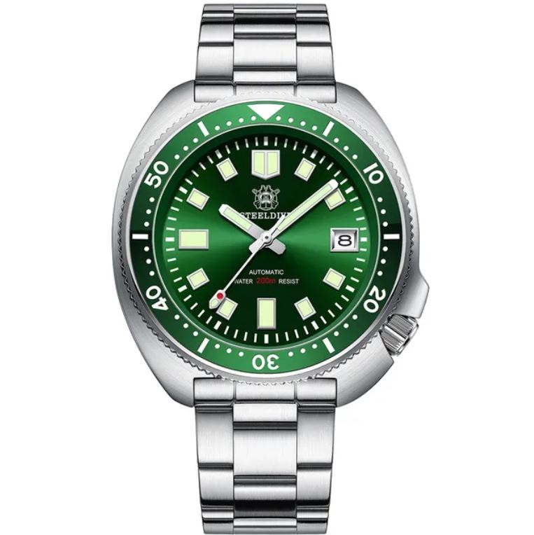 Эта модель обладает дайверской защитой от воды — 200 метров, но однозначной «фишкой» часов является выбор очень красивых циферблатов с насыщенными расцветками, прекрасно проработанными элементами и окошком «дата» на отметке 3 часа, что удобно. Корпус изготовлен из нержавеющей стали и дополнен однонаправленным зубчатым безелем на 120 кликов с люминесцентным элементом, который имеет красивый оттенок.