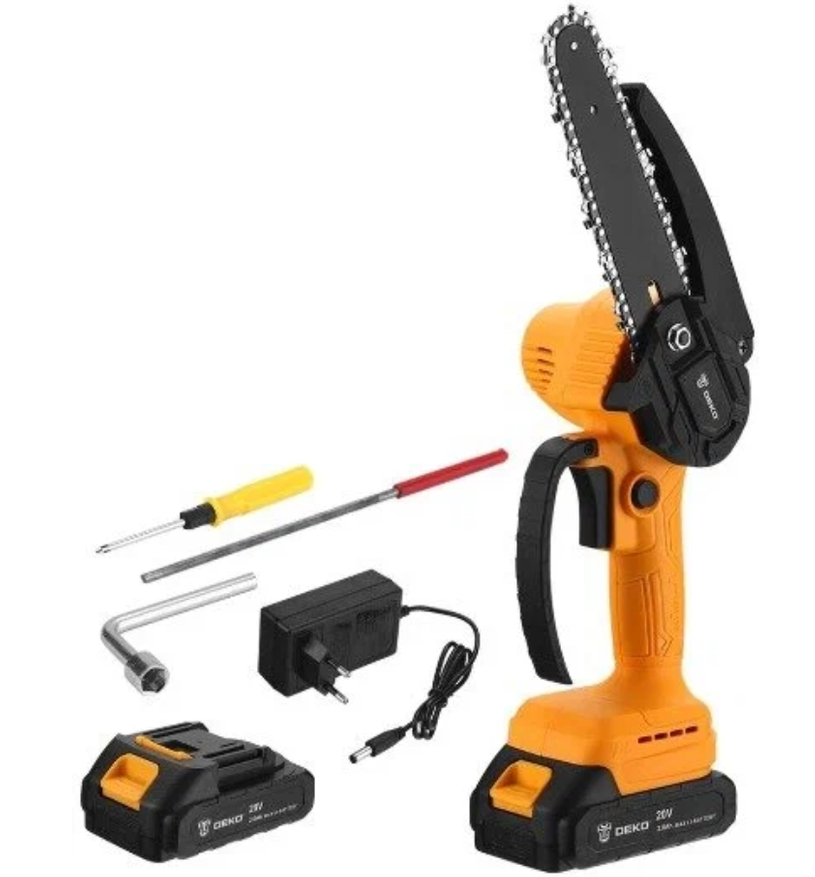 Данная бюджетная мини-пила оснащена 6-дюймовой (15 см) шиной, обеспечивающей высокую эффективность при распиле древесины и создании пропилов в деревянных конструкциях. Модель отличается точностью позиционирования, низким уровнем шума и быстрой скоростью резания. Привлекательная цена и относительно быстрая доставка из Китая (например, через AliExpress в течение 10-15 дней ) дополняют её преимущества. Эргономичный дизайн корпуса и достаточную ёмкость аккумулятора (стандартно 21 В / 1500 мА·ч ). Однако к минусам относят наличие лишь одной батареи в комплекте и габариты, превышающие аналогичные модели (например, на 2-3 см шире DEKO DKCHS 20-4 ), что частично нивелирует маневренность.