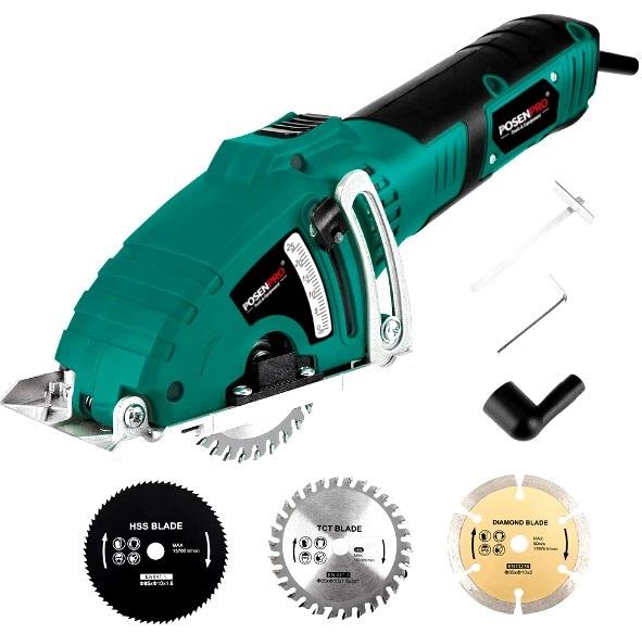 Данная пила от компании PosenPRO работает со сменными кругами с внешним диаметром до 85 мм, что позволяет осуществлять рез глубиной до 25 мм под прямым углом относительно обрабатываемого материала. При этом, во время работы можно выбрать и зафиксировать определенную глубину реза.