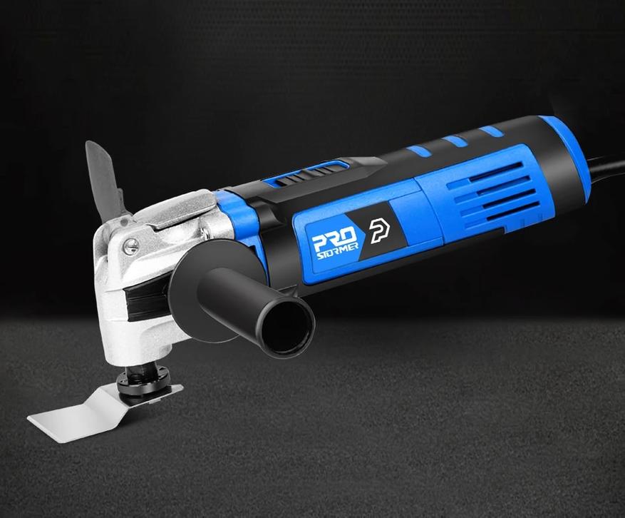 Открывает подборку наиболее популярный среди покупателей маркетплейса Aliexpress реноватор от бренда Prostormer. PTET1010 — это проводная модель с мощностью 300 Вт. Осциллятор способен работать в диапазоне от 15000 до 22000 кол/мин, что больше подходит для работы с мягкими материалами, такие как дерево или пластик. На задней стороне инструмента расположен регулятор скорости с шестью положениями. Длина кабеля питания составляет порядка двух метров, что позволит комфортно работать в домашних условиях. В стандартный комплект поставки входит несколько оснасток: треугольная пластина и два наждачных полотна к ней, пильное полотно и скребок. Также есть комплект запасных щеток для электродвигателя. Помимо стандартного набора, на страничке товара представлено еще три варианта комплектации реноватора с дополнительными насадками и фирменной сумкой.