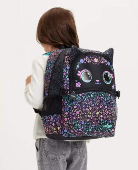 Оригинальный австралийский детский школьный рюкзак с чёрным дизайном, украшенным изображением кота и цветка. Модель относится к первой версии выпуска и оформлена по мотивам западной анимации. Дизайн сдержанный, но при этом включает выразительные элементы, которые делают рюкзак узнаваемым. Рюкзак относится к категории готовых товаров — изделие полностью укомплектовано и не требует дополнительной сборки или доработки. Размер и форма рюкзака позволяют использовать его для переноски учебников, тетрадей, пенала. Может использоваться как в учебное время. Материал, швы и конструкция рассчитаны на регулярное ношение.