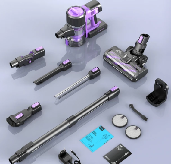 Пылесос укомплектован HEPA-фильтром, длинным насадочным адаптером, кисточкой, удлинённым гибким шлангом и USB-кабелем длиной около 1 метра. Индикатор зарядки позволяет отслеживать статус аккумулятора. Во время работы кнопку удерживать не требуется — включение фиксированное. Подсветка помогает ориентироваться при уборке в затемнённых участках, например под мебелью.