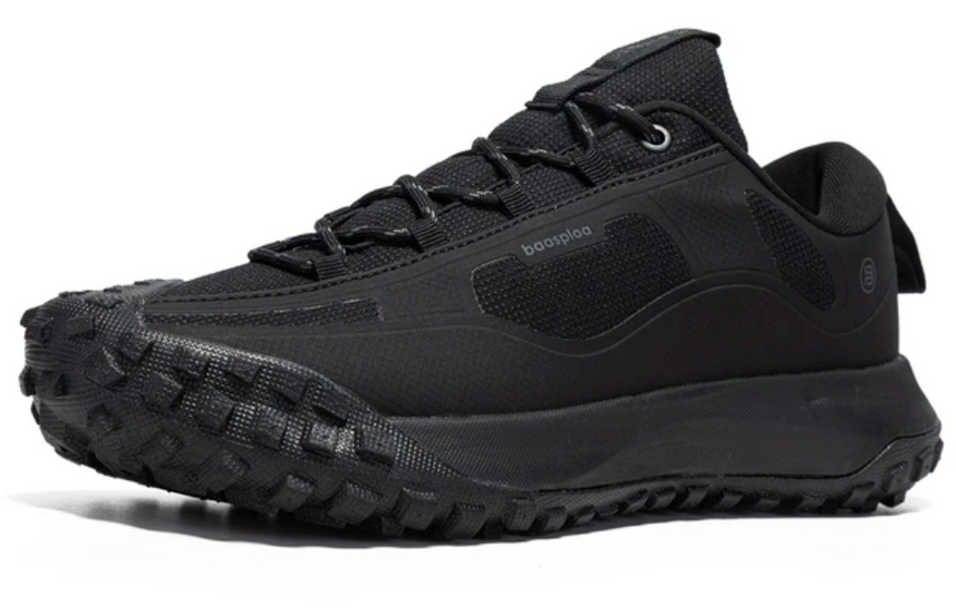 Подошва выполнена из TPR, стелька из EVA. Такая комбинация распределяет нагрузку при движении и обеспечивает контакт с разными типами поверхности. Протектор выраженный, подходит для грунта, камней и неровных участков. Колодка средней ширины (B/M). Посадка соответствует обычному размеру. Конструкция без металлического носка. Есть заявленная защита от влаги. Метод крепления — склеивание.