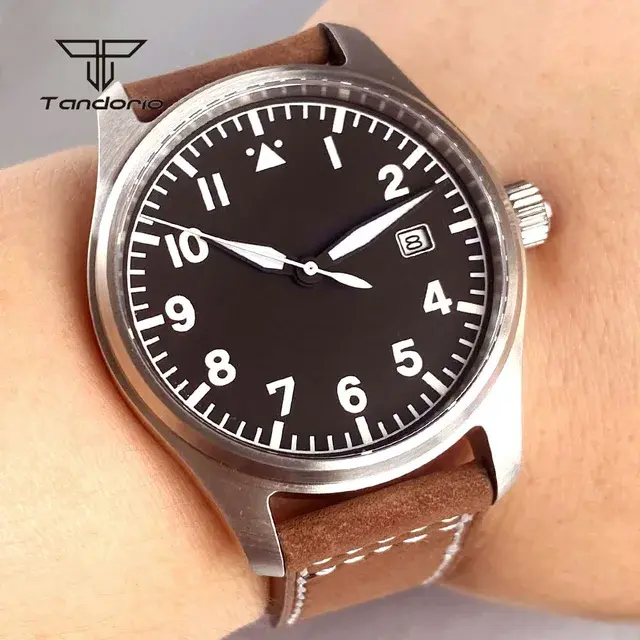 Часы Tandorio выполнены в классическом стиле «пилотских» моделей. Корпус изготовлен из нержавеющей стали, диаметр — 39 мм. Циферблат чёрного цвета украшен крупными арабскими цифрами белого цвета на отметках 1-12, а также белыми линейными метками для минут. В положении «3 часа» расположено окошко даты. Стрелки часов белого цвета, имеют люминесцентное покрытие для лучшей читаемости в условиях недостаточной освещённости. Заводная головка расположена с правой стороны корпуса.