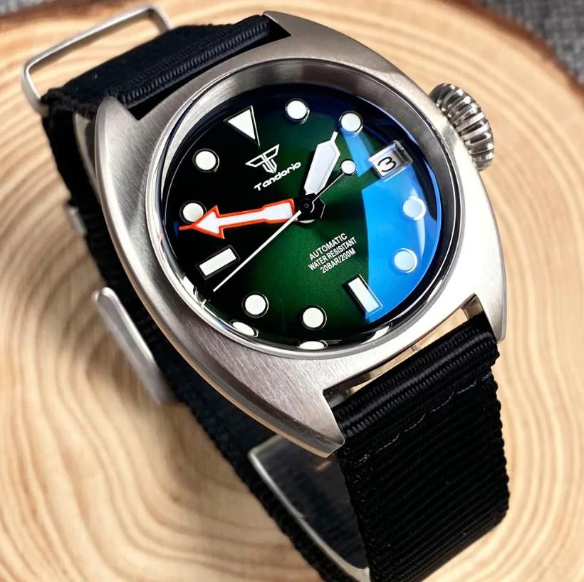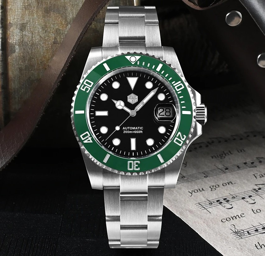 Это механические дайверские часы, выполненные в классическом стиле профессиональных моделей для подводного плавания. Корпус изготовлен из нержавеющей стали 316L и имеет диаметр около 40 мм, благодаря чему часы удобно сидят на запястье и подходят для ежедневного ношения. Внутри установлен автоматический японский механизм NH35, который заводится от движения руки и обеспечивает стабильную точность хода.