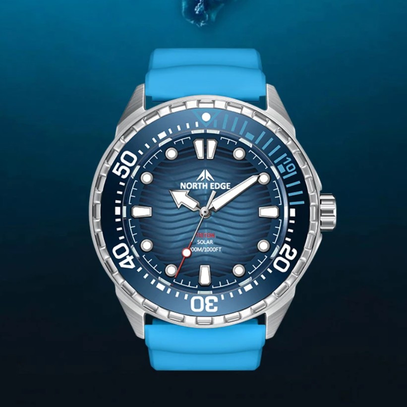 Однонаправленный вращающийся безель помогает отслеживать время во время погружений. Обратите внимание на конструкцию безеля, он как бы углублен в корпусе, что препятствует случайному повороту. Водозащита достигает 200 м, поэтому часы подходят для плавания и дайвинга. Люминесцентные метки на стрелках и циферблате также имеются, и они выполнены в двух цветах.