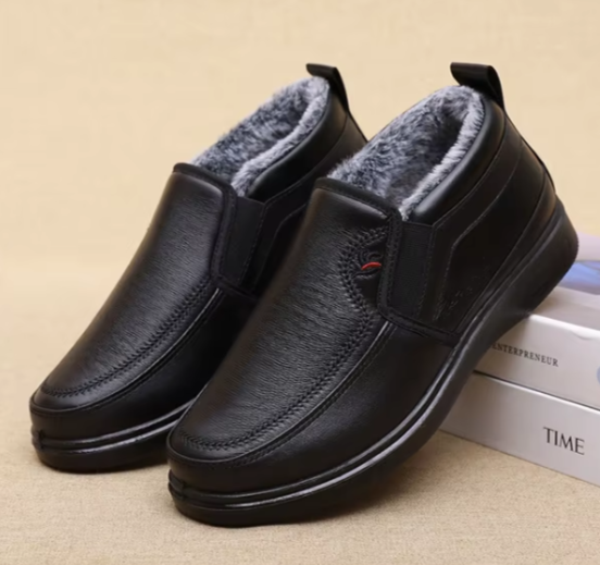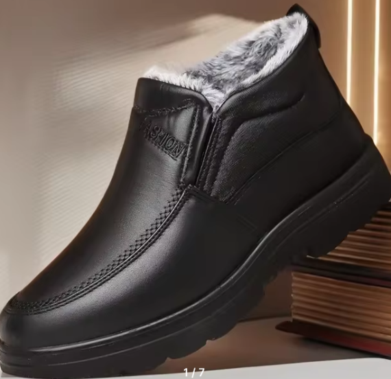 Практичные и удобные мужские ботинки для зимы. Изготовлены из водоотталкивающего материала, дополнены меховой подкладкой для сохранения тепла при температуре до -10°C. Отсутствие шнурков для легкого надевания и снятия. Подходят для широкой стопы (рекомендуется заказывать на 1-2 размера больше). Легкая конструкция для комфортного повседневного использования.