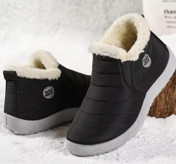 Практичная модель для холодного времени года. Верх выполнен из эластичного материала, обеспечивающего комфортное прилегание. Внутренняя часть ботинок утеплена флисом для сохранения тепла. Стелька из короткого плюша добавляет мягкости и удобства. Застёжек нет — обувь легко надевается и снимается. Подходят для повседневной носки в холодную погоду.