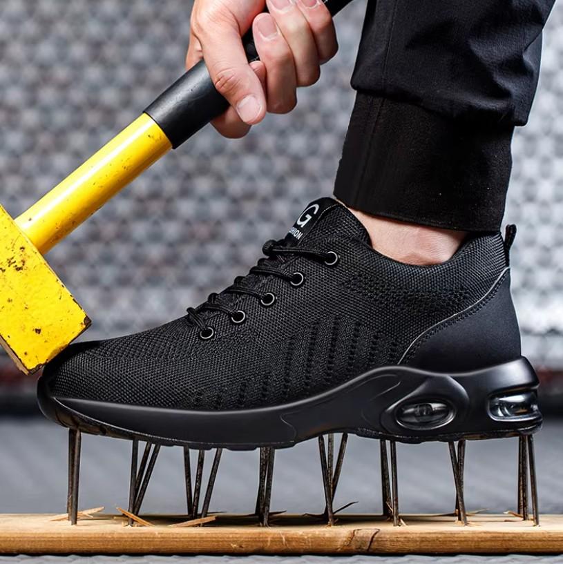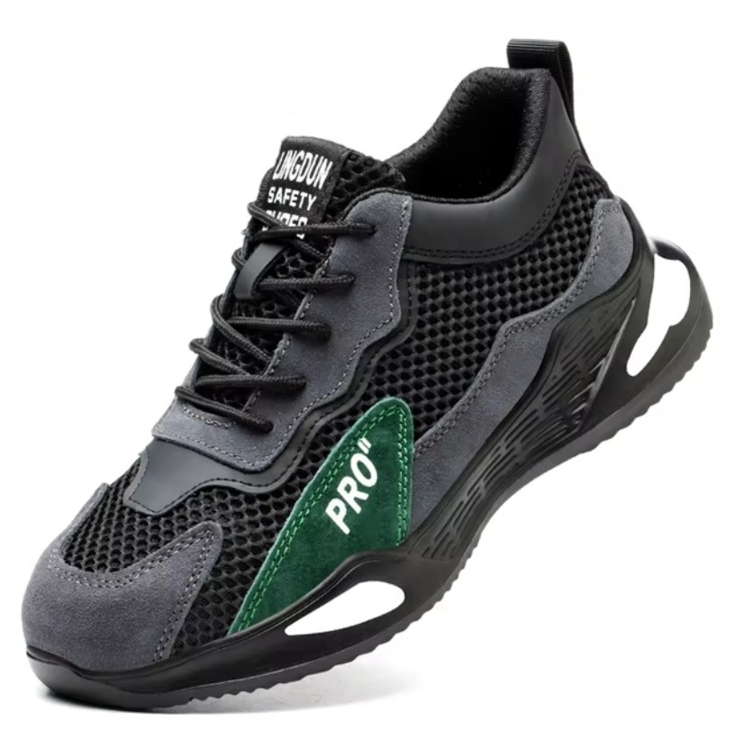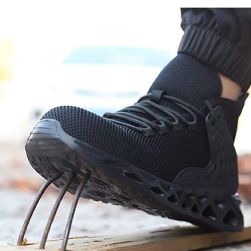 Несмотря на легкость, они оснащены полноценным стальным носком для защиты от ударов и кевларовой стелькой, предотвращающей проколы. Гибкая резиновая подошва обладает антискользящим эффектом, а стелька из EVA эффективно амортизирует шаги. Это спецобувь, сочетающая комфорт летних кроссовок и условно промышленную безопасность. Нужно понимать, что такие кроссовки не подойдут для многих видов работ, так как элементарно даже искры, попавшие в широкую фракцию сетки, могут обжечь стопу.