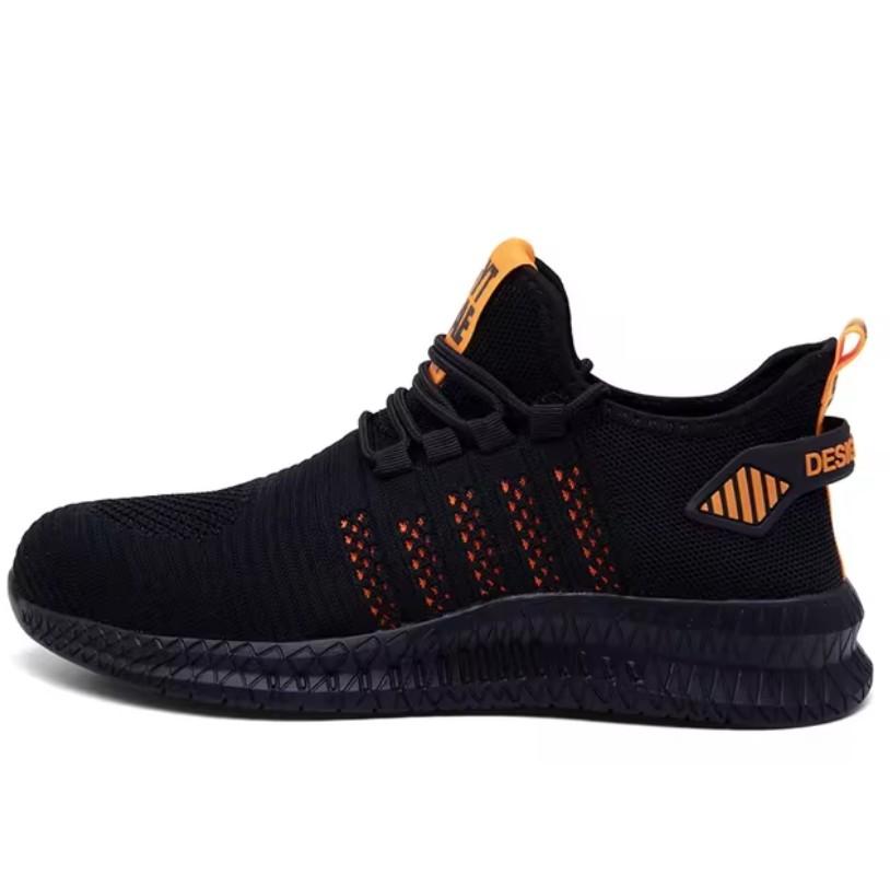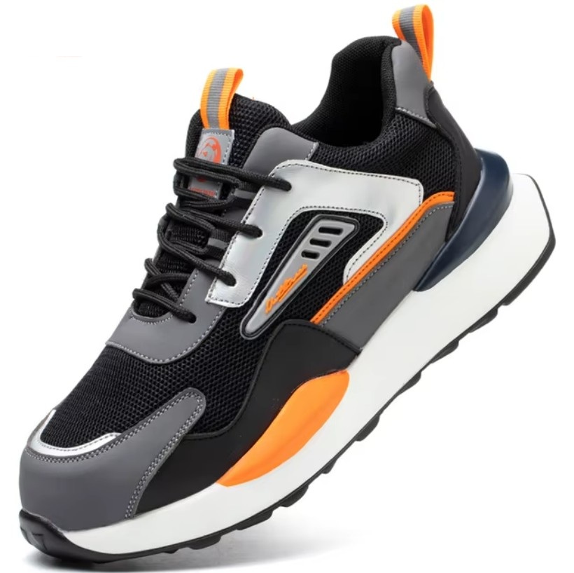 Визуально модель напоминает современные спортивные кроссовки с яркими оранжевыми акцентами, скрывая внутри мощную функцию спецобуви. Традиционно для этой подборки безопасность обеспечена стальным носком европейского стандарта и гибкой антипрокольной стелькой из кевлара.