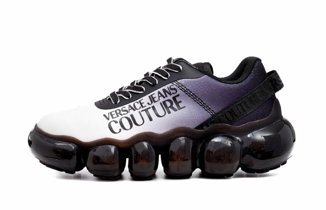 Кроссовки Versace Jeans, выполненные из неопрена, выделяются среди традиционных моделей благодаря необычному материалу, часто используемому в спортивной экипировке. Высокая резиновая подошва, обеспечивающая надежное сцепление, добавляет роста. Кожаная стелька, мягко облегающая стопу, создает комфорт. Шнуровка, плотно фиксирующая обувь, позволяет регулировать посадку. Логотип Versace, размещенный на язычке, подчеркивает принадлежность к бренду, сочетая моду и практичность.